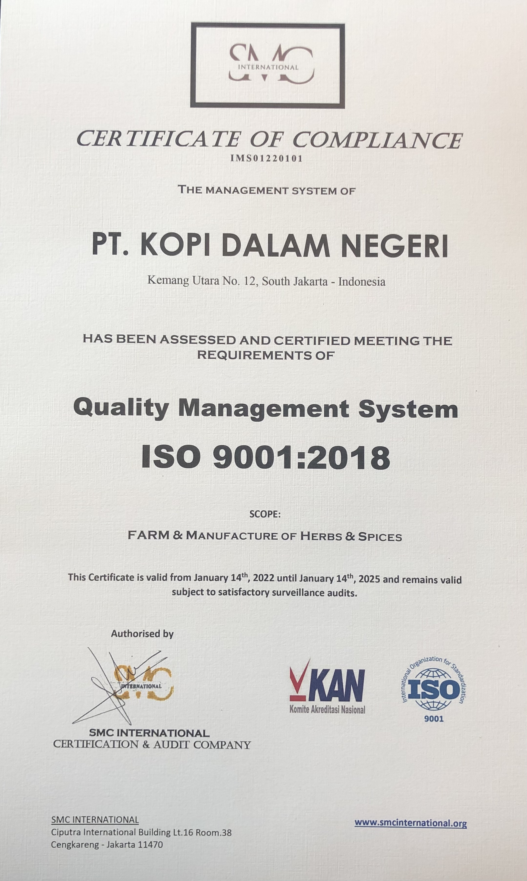 This Certificate Valid From 14 Jan 2022 Until 14 Jan 2025