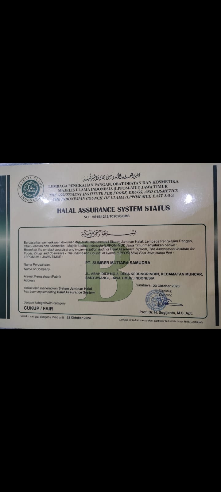 This Certificate Valid From 23 Oct 2020 Until 22 Oct 2024