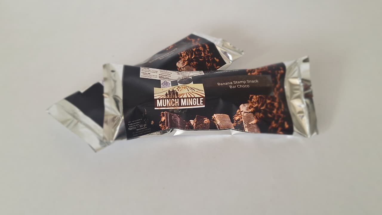 Unity between crispy bananas, dates, raisins, sun seeds and chocolate coated beans. Available in Box Finishing 20 x 50g