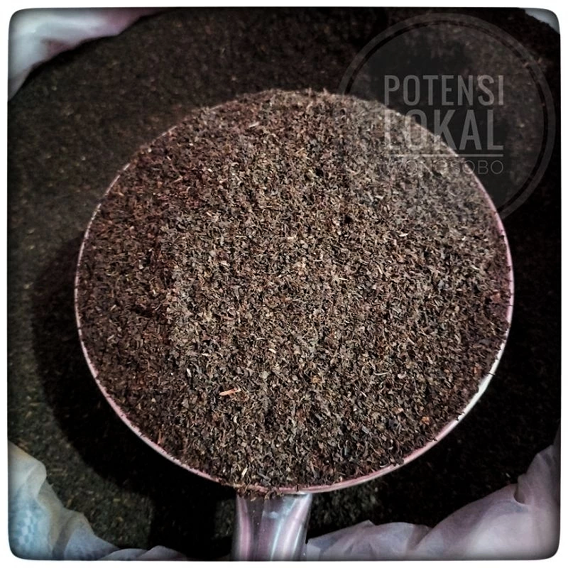 Tea leaf particles shorts, rather small, black, twisted. Origin from Tambi, Wonosobo, Central Java, Indonesia.