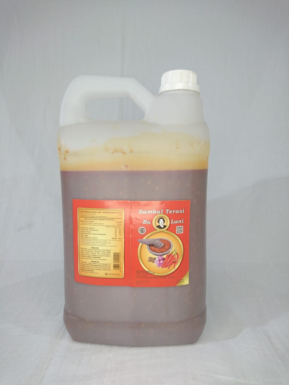 Sambal Terasi Bu Lani is Indonesian chili paste with fermented shrimp. Mainly used as condiment to eat with meals. Its main ingredients are chili, shallot, and fermented shrimp.