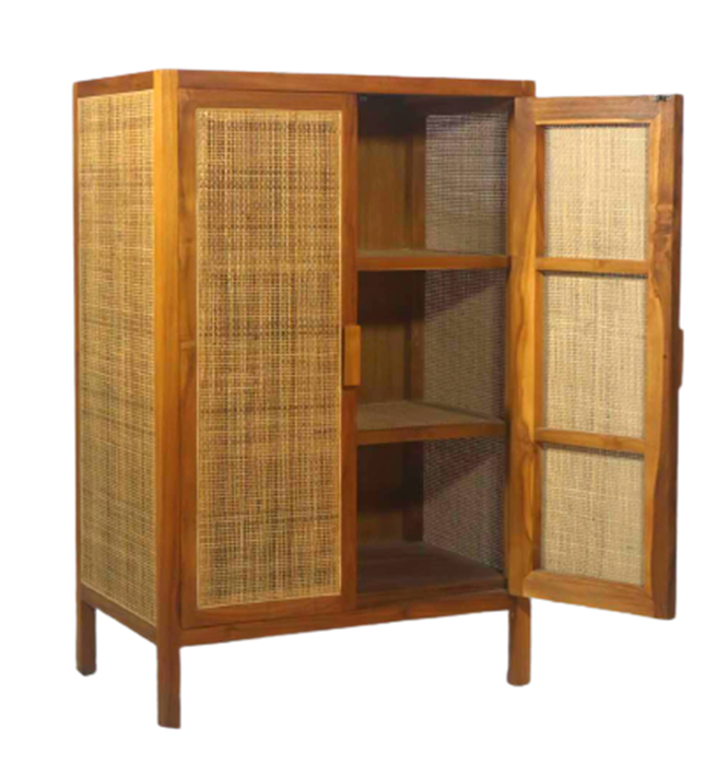 CABINET 2 DOORS WITH RATTAN WEBBING