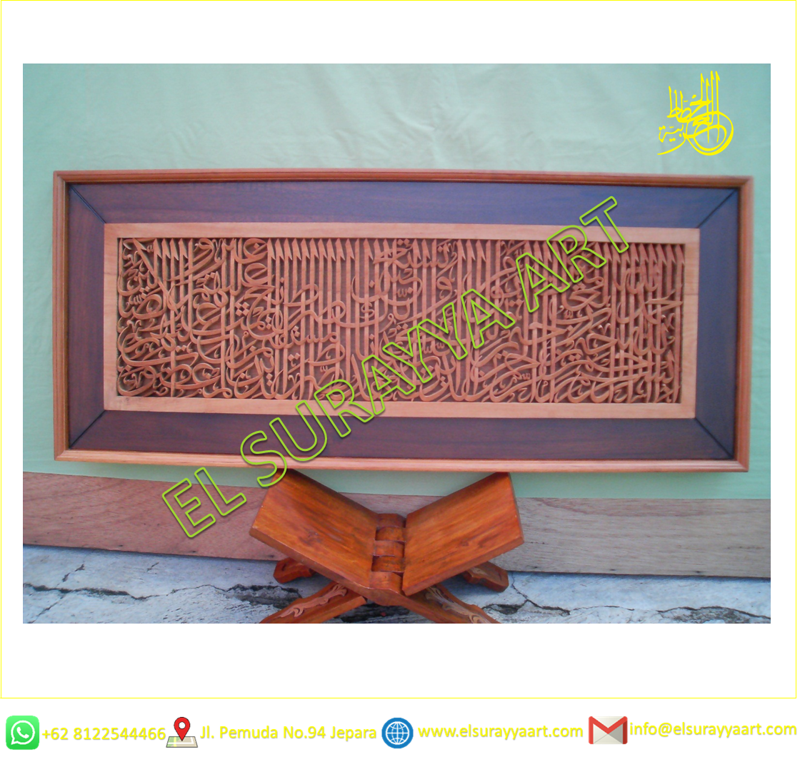 Original design calligraphy el surayya art surah Al Fatihah Size 139 cm x 57 cm. natural finishing of Perhutani teak wood.