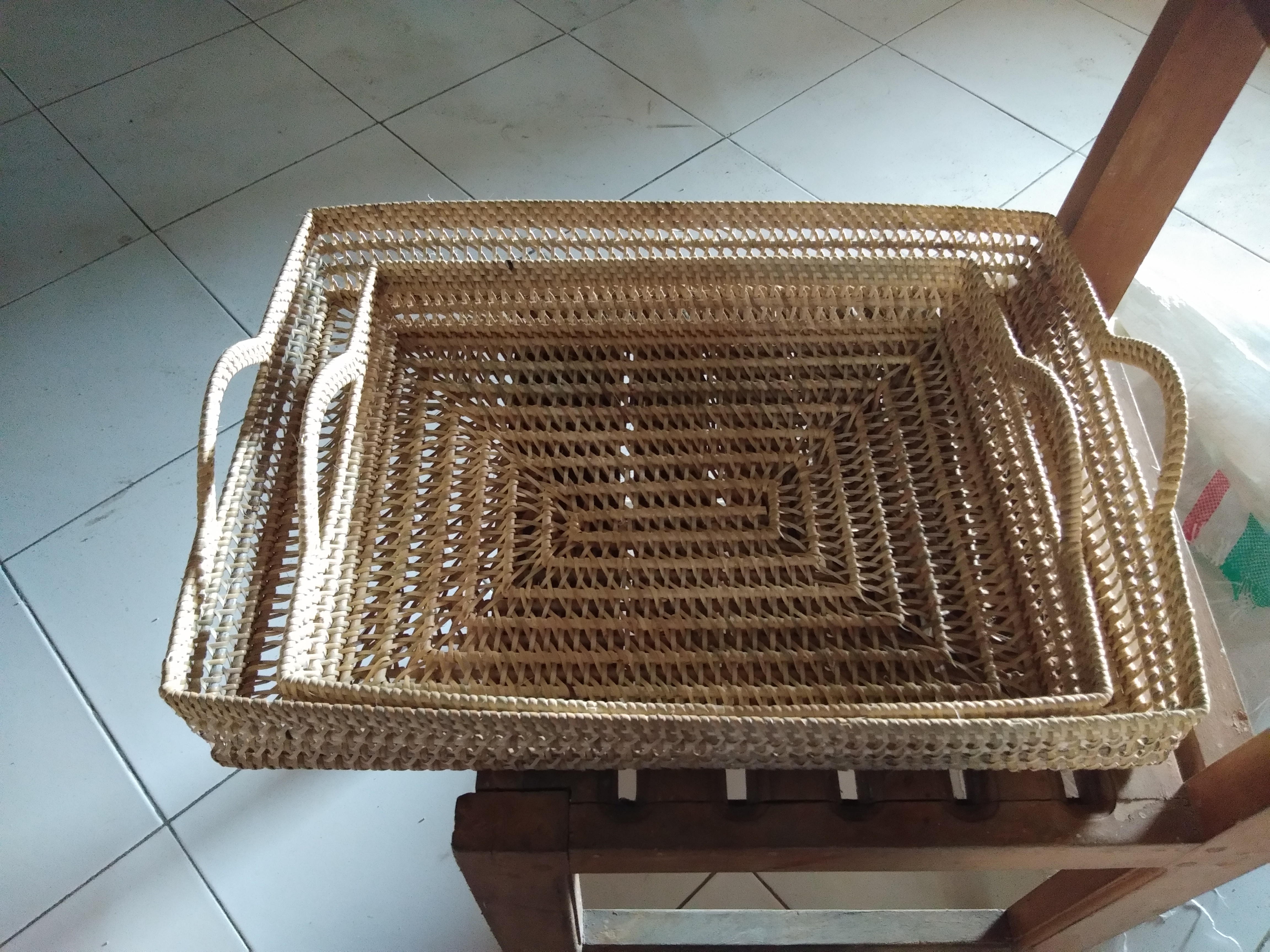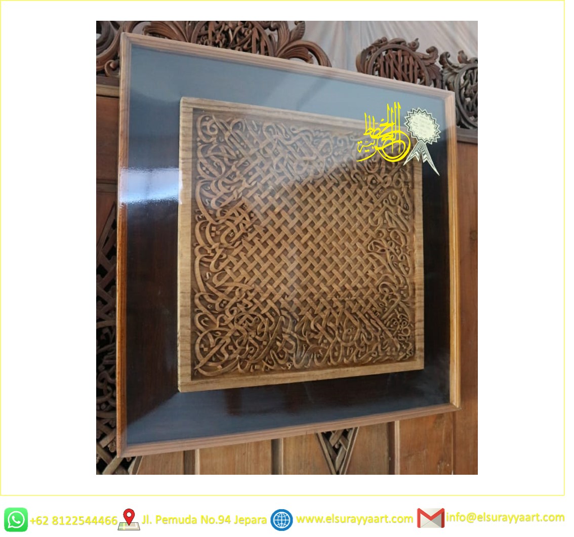 Calligraphy of woven Surah Al Fatihah with weak carving technique, size 78cm square.