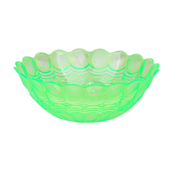 0811 Bowl is a plastic bowl that has an elegant, scalloped edge. The surface has a pattern with faceted or embossed details, giving it a textured, crystalline look. This design ...