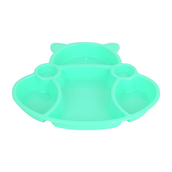 Bear kids plate a pastel color plastic dish or plate with three compartments. The tray is designed in a cute shape, possibly resembling a cartoon animal with small ears (like a ...