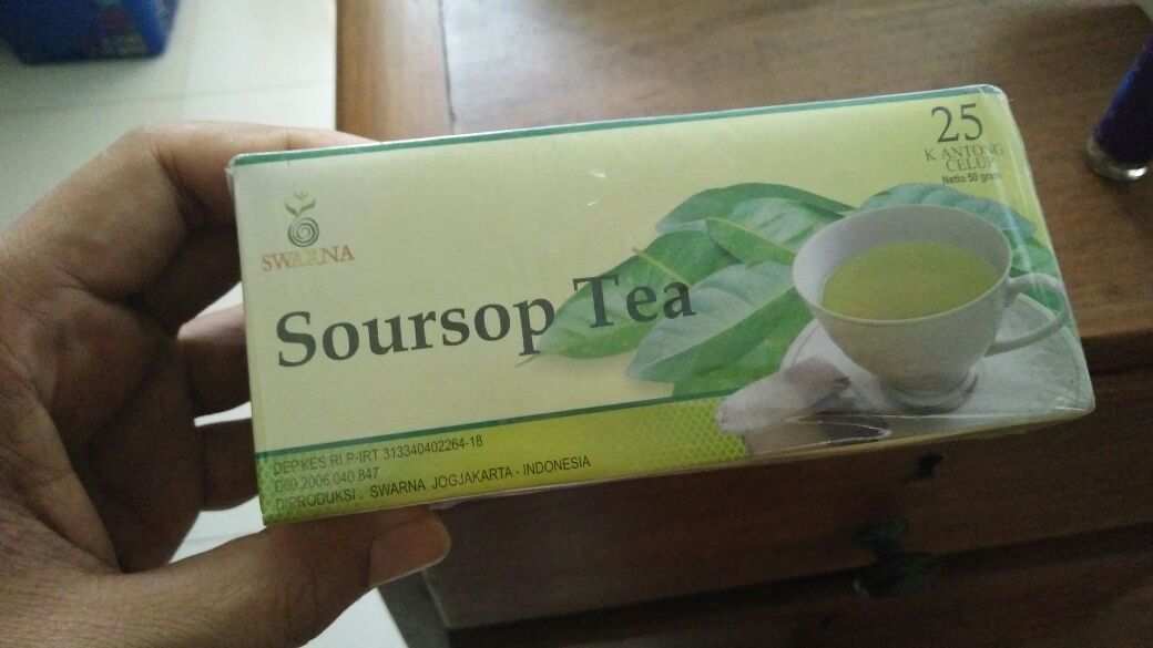 Soursop Tea Leaves for Cancer Buy from Online Suppliers - Price, Reviews and Health Benefits SWARNA   Product Descriptions : - Composition Ingredients : 100% pure soursop / graviola / guyabano leaves - 1 tea bag : 2 grams soursop leaf - 1 box : 25 tea bags -...