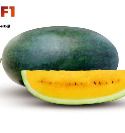 Watermelon Hybrid Type Inul Seed, Fruit shape: oval, Weight per fruit: 3 - 4 kg, Flesh color: dark yellow, Skin color: dark green, Brix: 13, Yield potential: 30 - 40 tons, Very sweet and crunchy, Harvest age: 56-60 days, Fusarium resistant, good taste