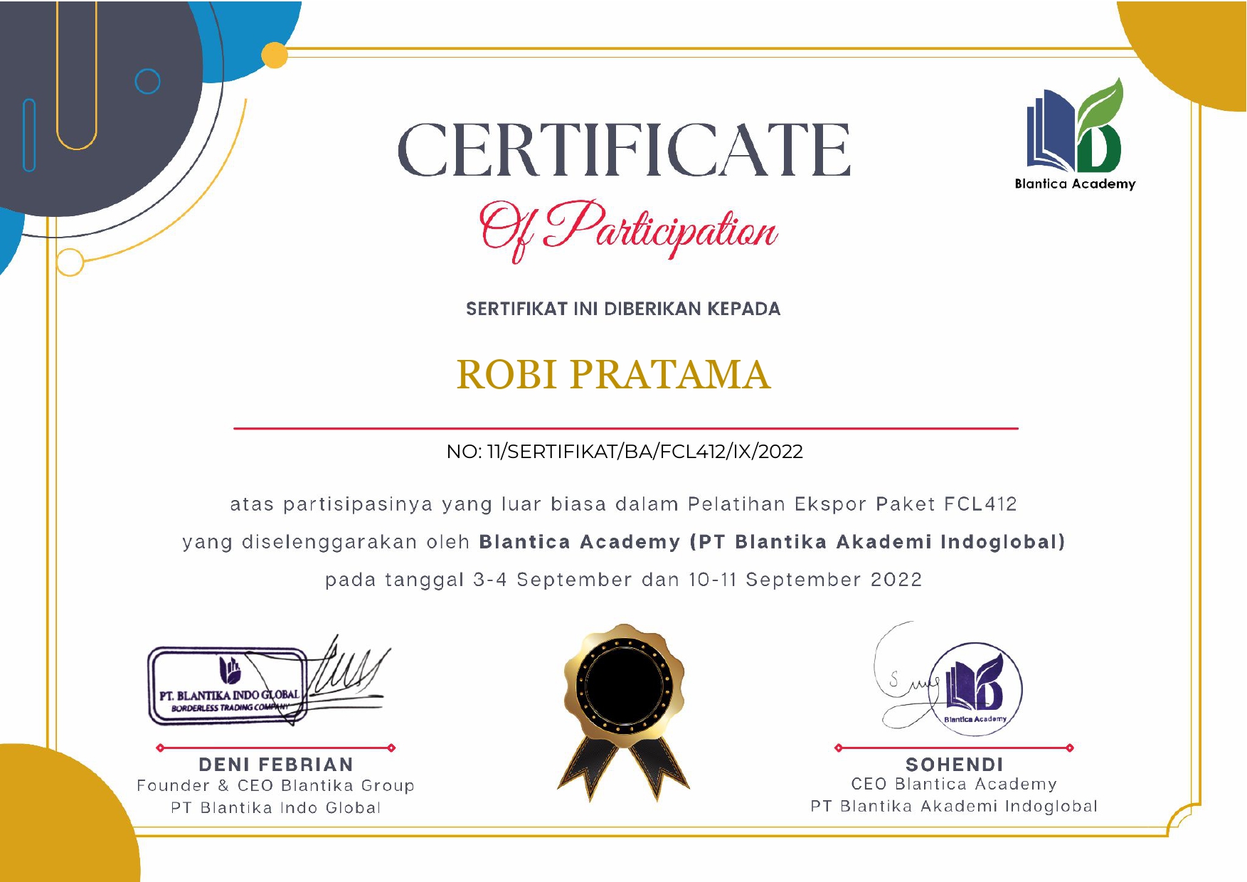 Reference No NO: 11/SERTIFIKAT/BA/FCL412/IX/2022