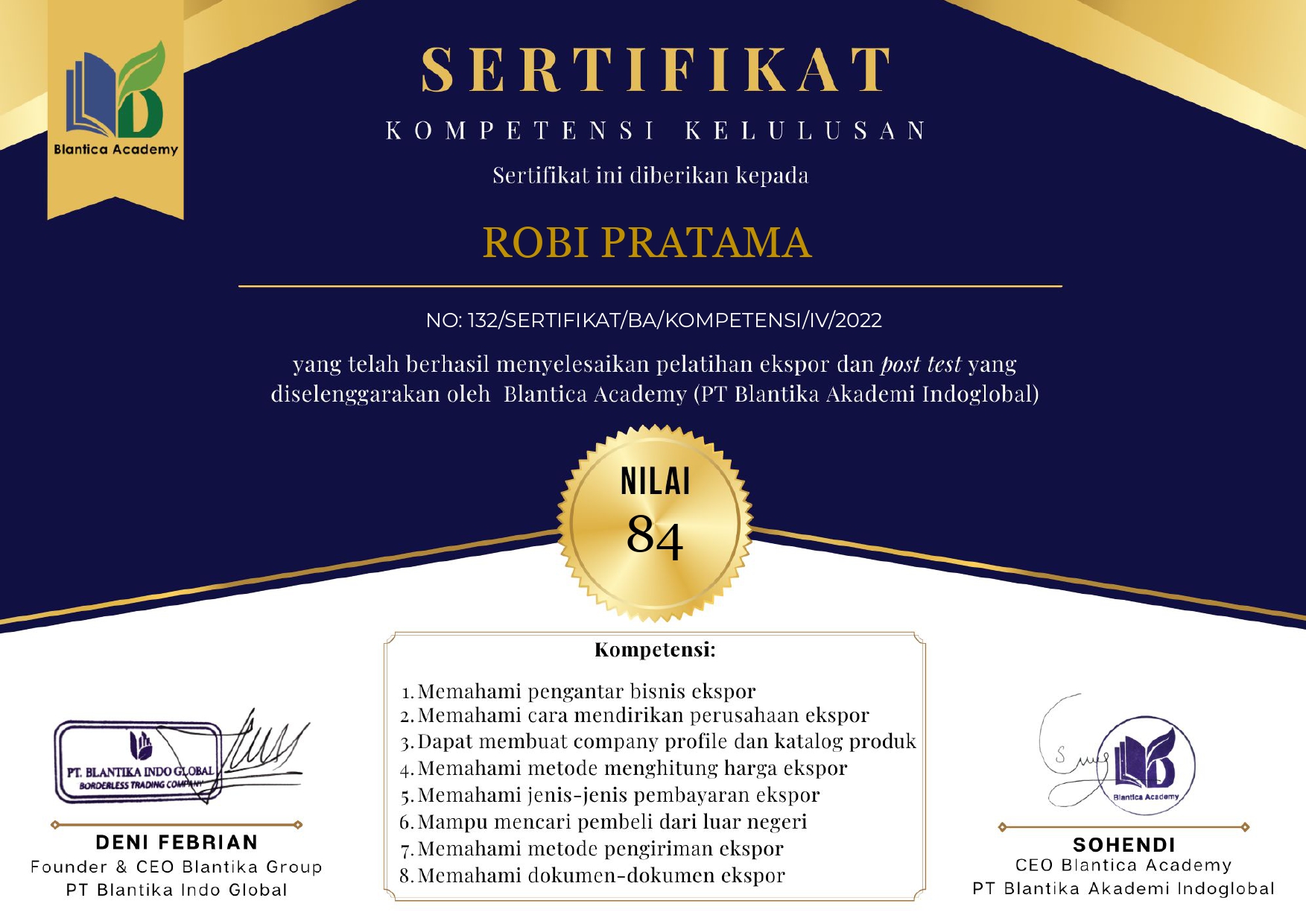 Reference No NO: 132/SERTIFIKAT/BA/KOMPETENSI/IV/2022