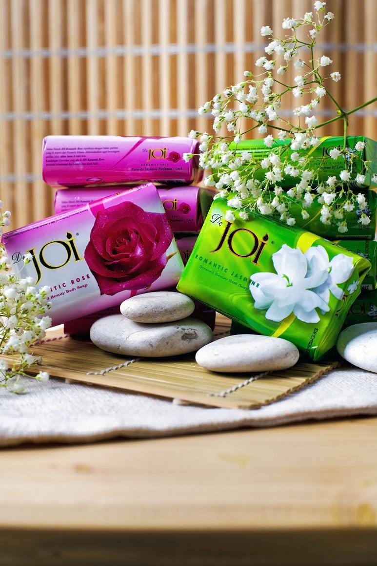 JOI Romantic Beauty Bath Soap is premium soap with strong fragrances and comes in 3 varients : Rose, Jasmine and Frangipani. 1 carton = 80gr x 72 pcs  and loadibility 3,320 cartons. Each soap is wrapped in Paper wrapped. Does not contain animal fat. Made from Palm Oil and Coconut oil.