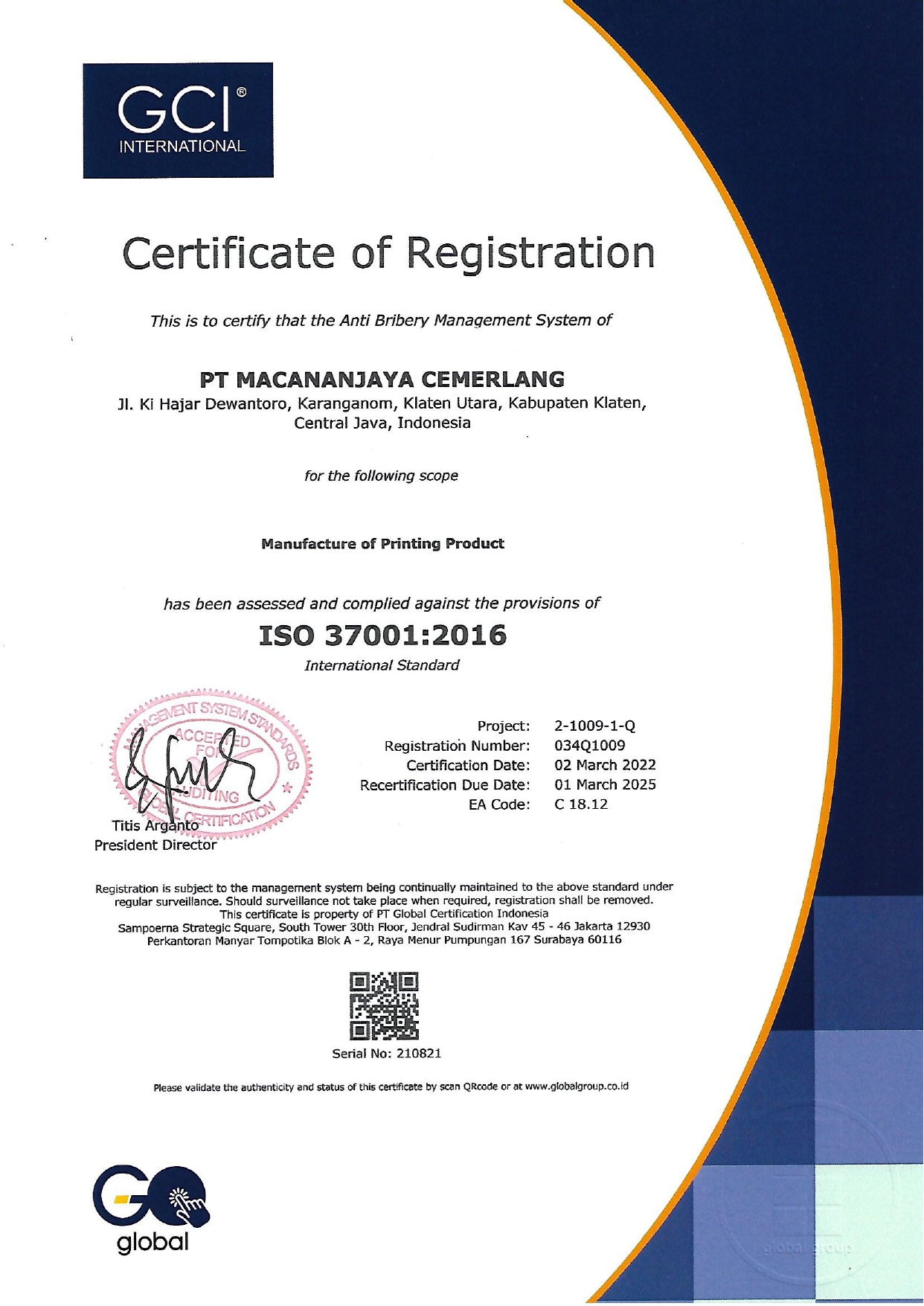 PT. Macananjaya Cemerlang is a publishing and printing company based in Klaten, Indonesia. With the support of the best human resources and advanced technology, we will offer the best solution to materialize all creative ideas into top-quality printed products. We can do Softcover & Hardcover Books, Board Books, Calendars, Packaging, Catalog, Brochure, Paper bags, and many other paper-based printed products. Our machines include Prepress CTP (Computer to Plate), Web Offset, Sheetfed Offset, Integrated Perfect Binding Machine, Saddle Stitching, Thread Sewing, Hard Cover Case Maker, Deboss Emboss Machine, Hard Cover Casing In, Booklet Folding and UV Varnish Machine.