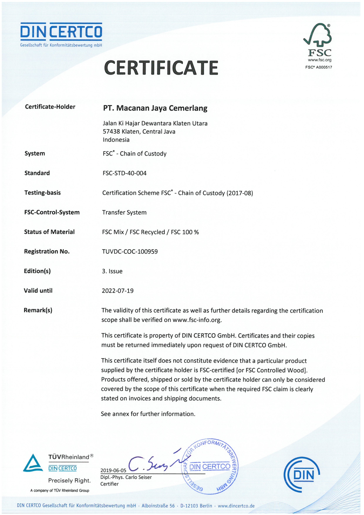 Reference No TUVDC-COC-100959