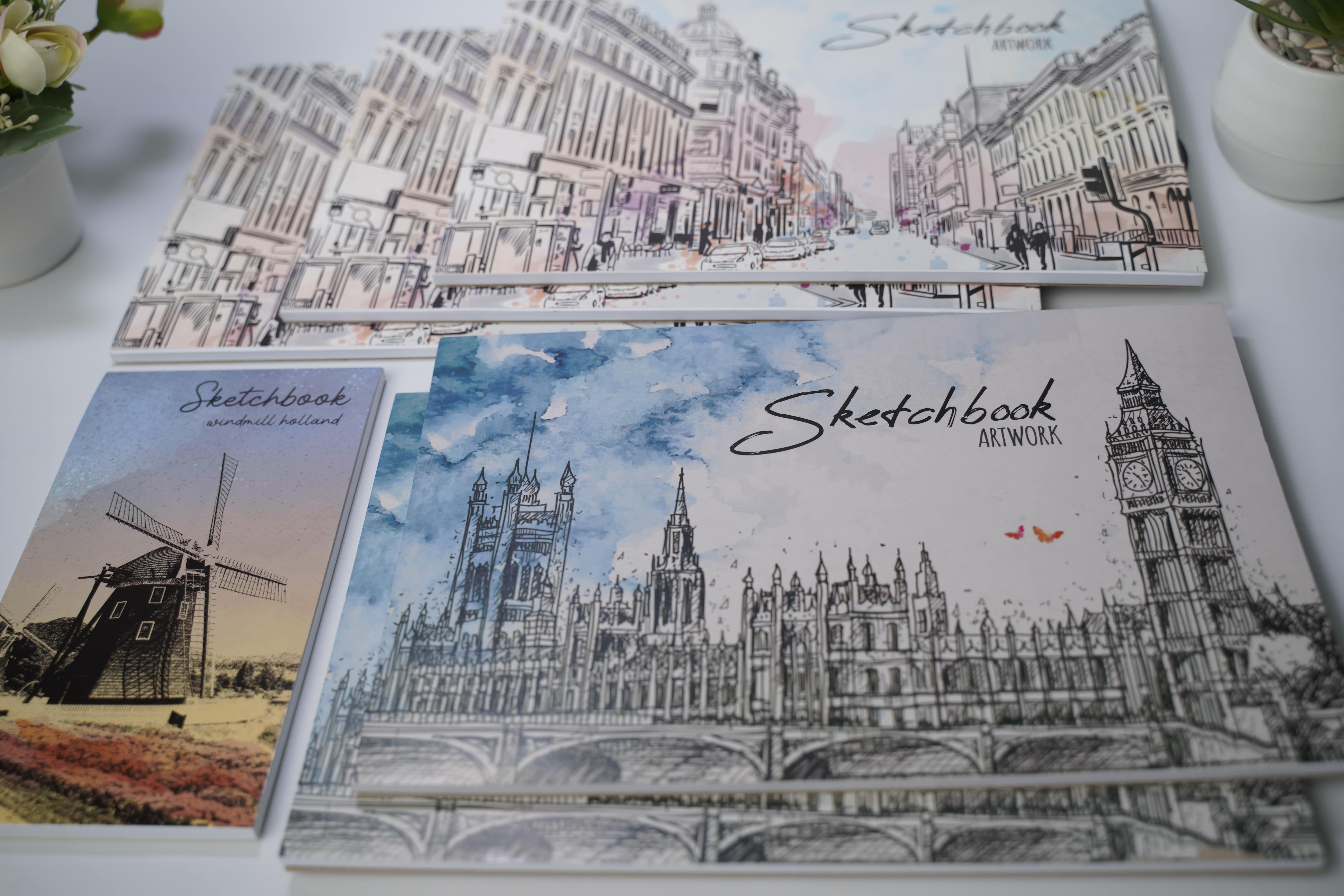 Commonly known as drawing book. Consisting of ordinary sheets of paper, usually used by painting artists and graphic designers, it functions as a space to express creativity and record ideas. This book will helps develop concepts and visualize designs. Sketchbook typically have 18 to 36 pades with several binding options: saddle...