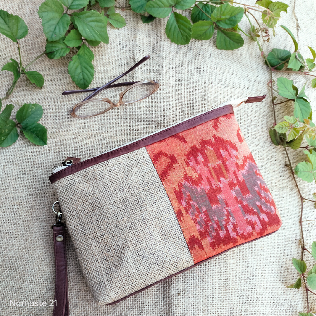 "Astika is a handcrafted women's pouch product made from laminated jute combined with Bali's traditional fabric, Endek. It adds a charming aura to its wearer." Size : 24 X 17 X 5