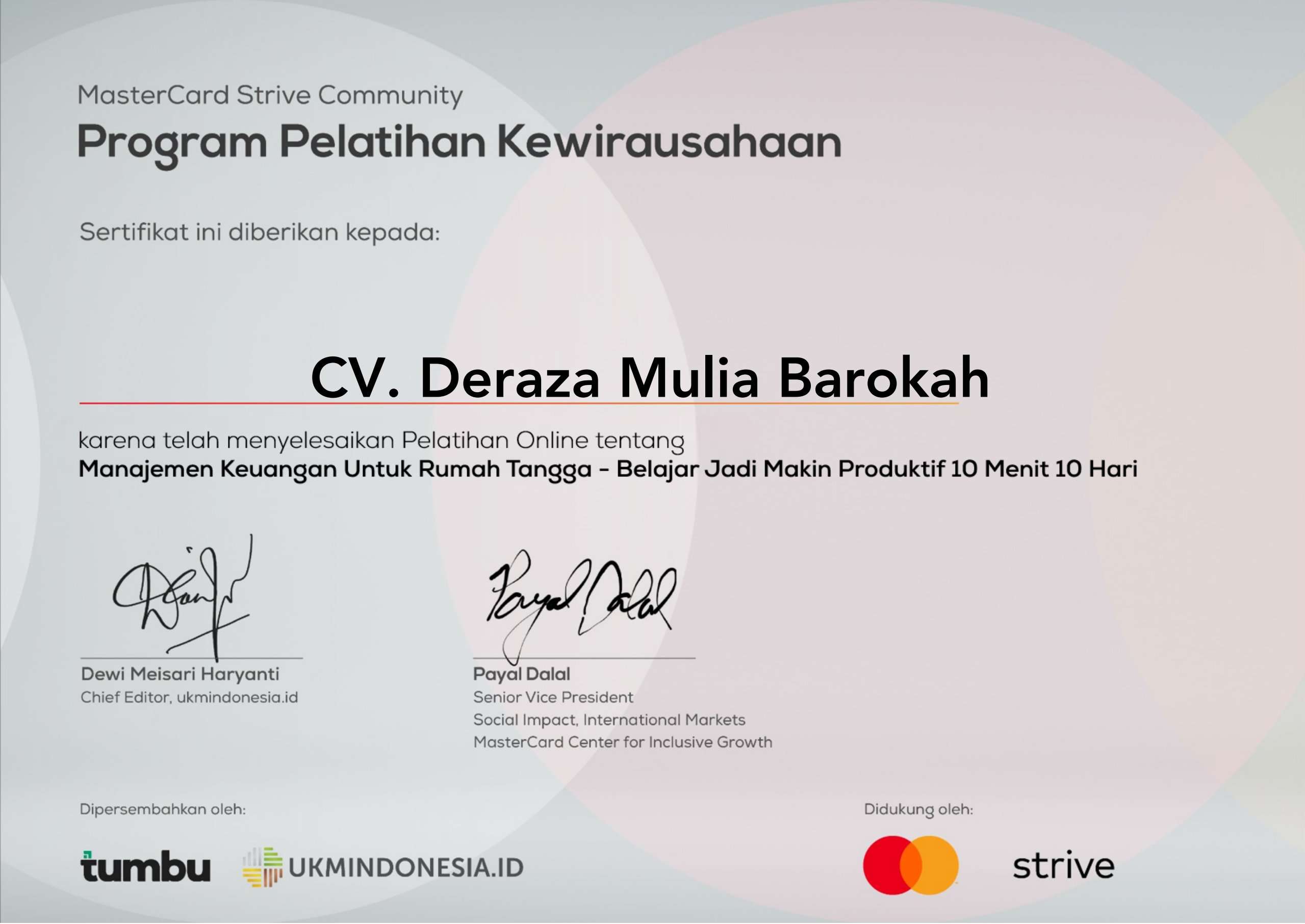 DERAZA MULIA BAROKAH, CV