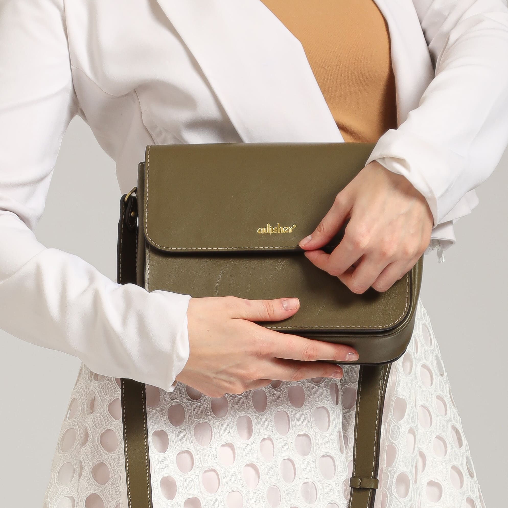 Adisher Gendari Leather Flap Bag in Green Olive