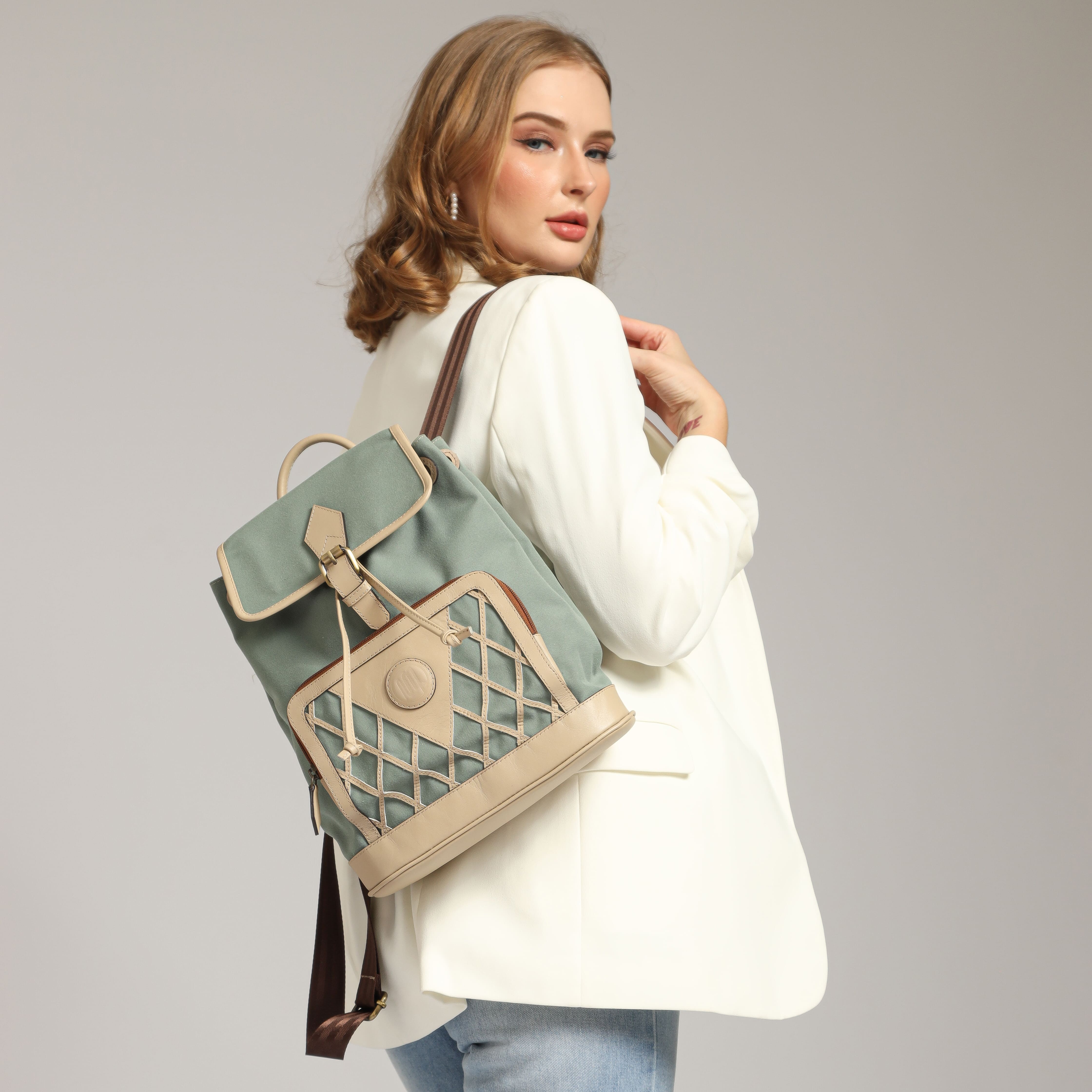 Adisher Arimbi Backpack Ransel Leather in Green Sage - Pearl