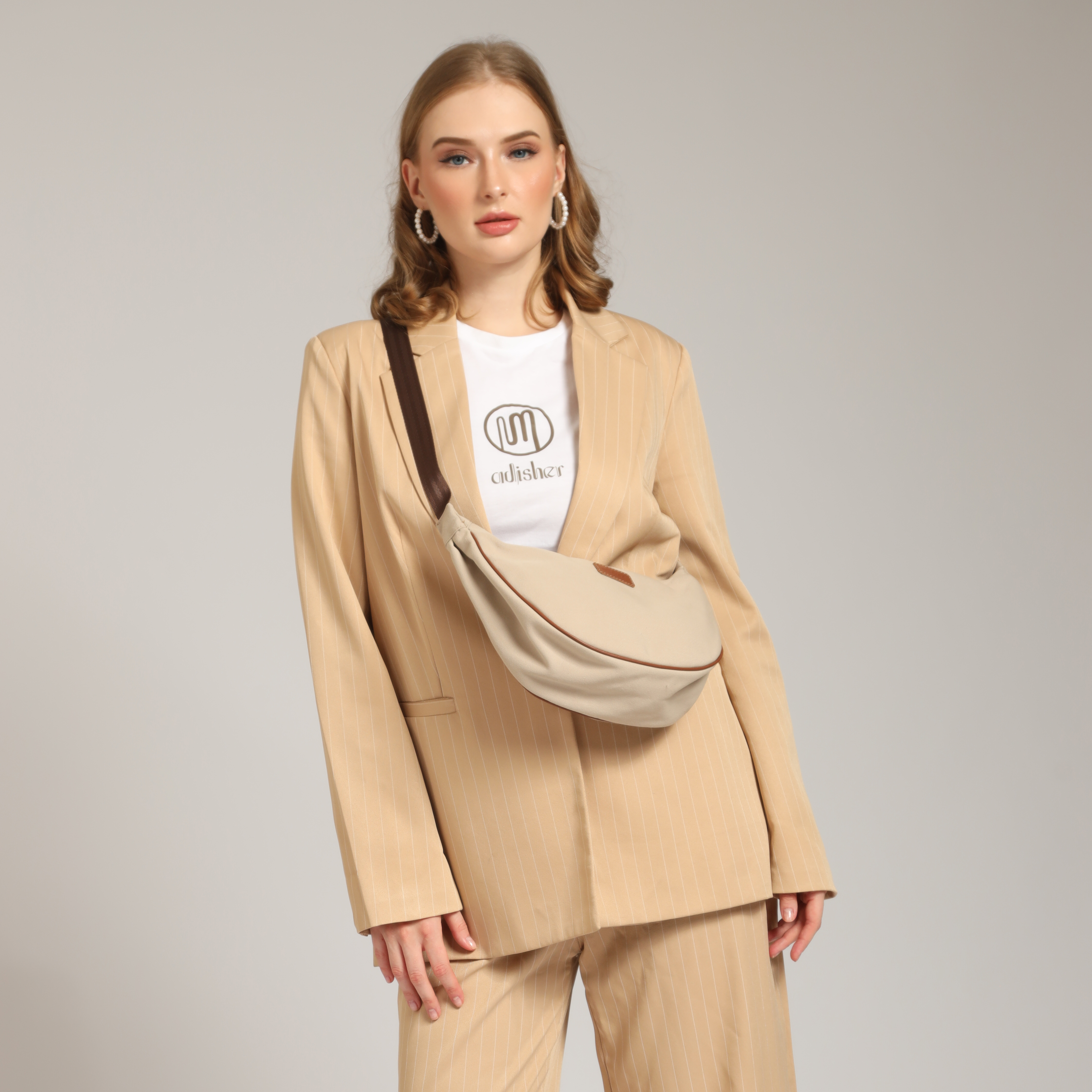Adisher Ambalika Canvas Waist Bag Fanny Pack Festival Bag Bum Bag in White Sand - Brown