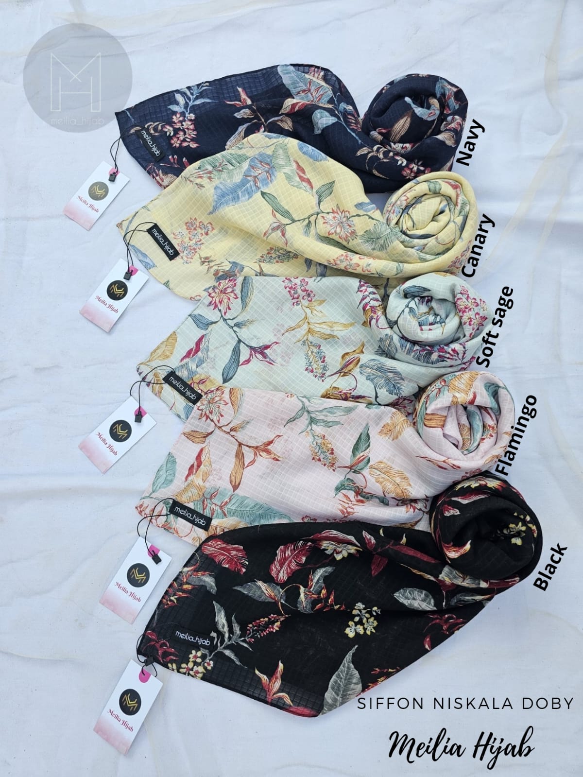 5 beautiful colors from the latest Siffon Niskala Doby motif✨ A hijab or rectangular headscarf made of material that is very easy to wear with neat sewing edges