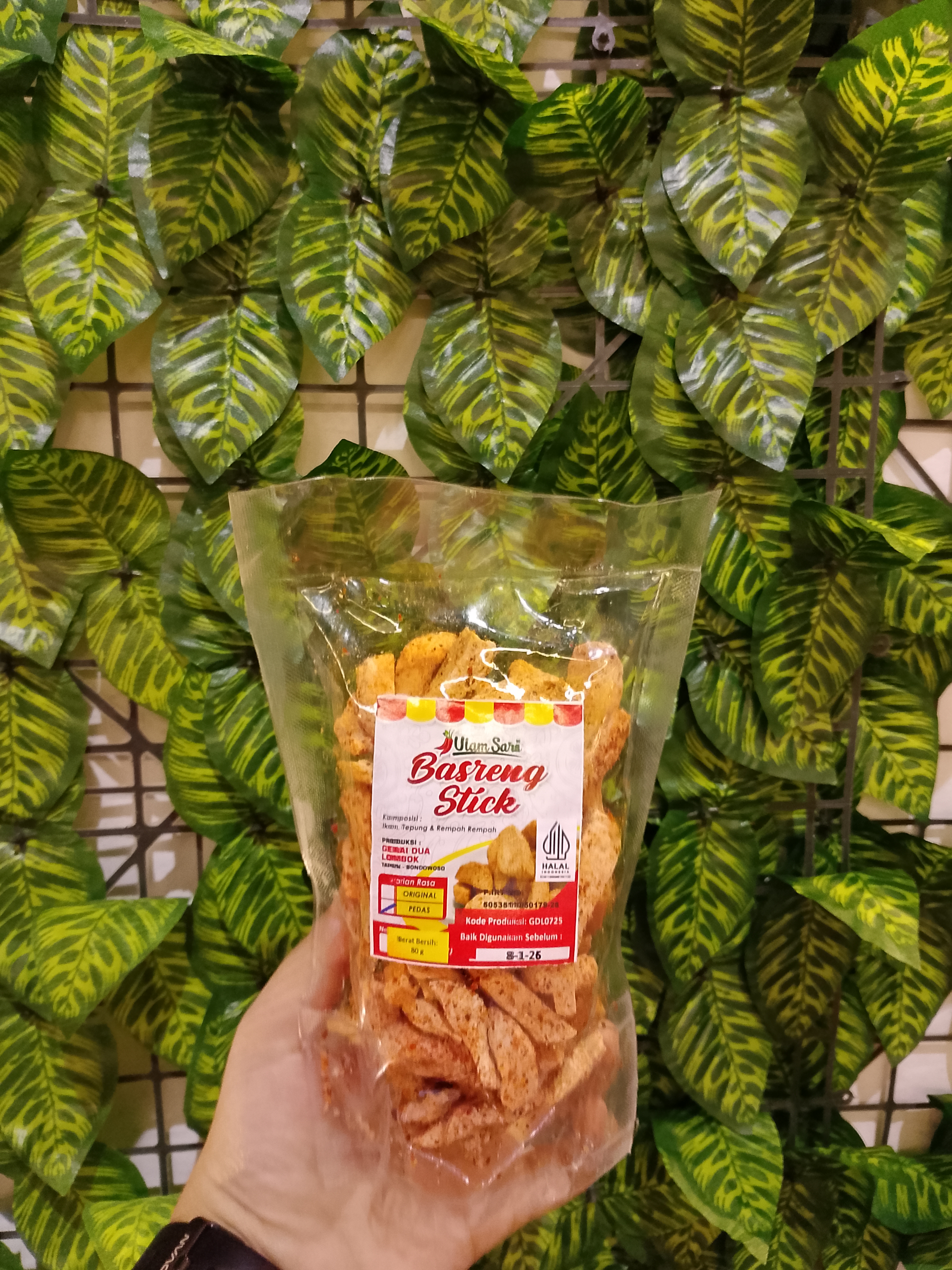 Basreng Stick Spicy 80 Gram - Savory, Salty, Spicy. Basreng Stick Spicy Stick is a savory Indonesian snack made from processed mackerel that is cut thinly in the form of sticks, then fried to dry and crispy. This snack is seasoned with a typical spice concoction that produces a spicy, salty, and savory taste that fits on the...